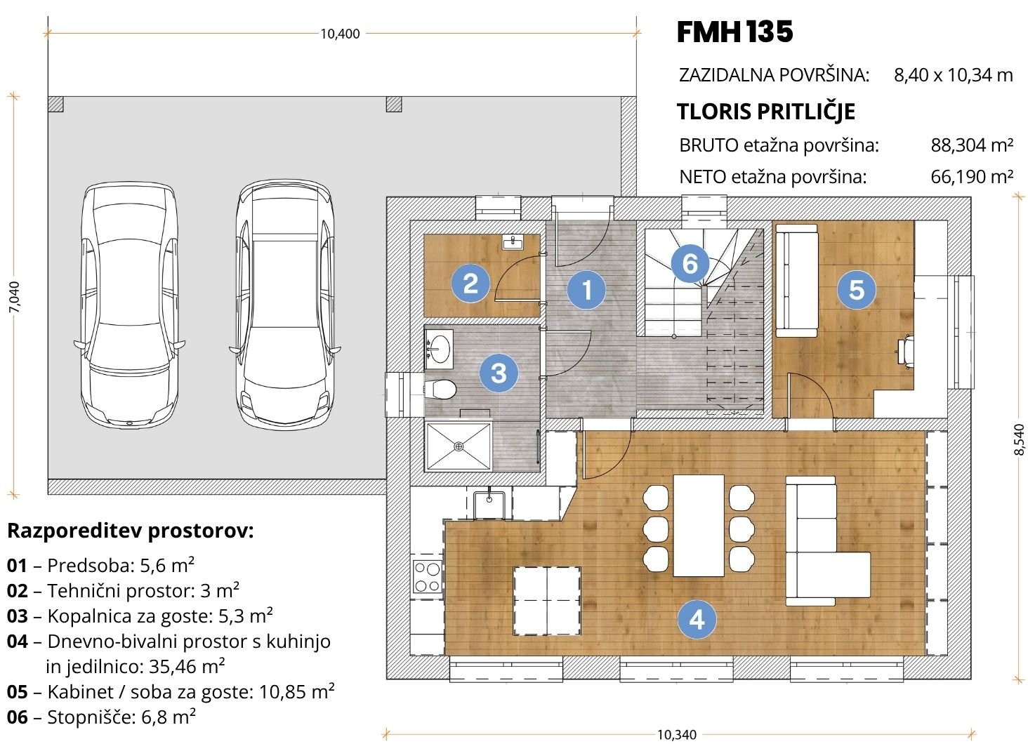Dostopna cena: Hiša FMH 135 je cenovno dostopna, kar omogoča mladim družinam lažji dostop do lastnega doma.