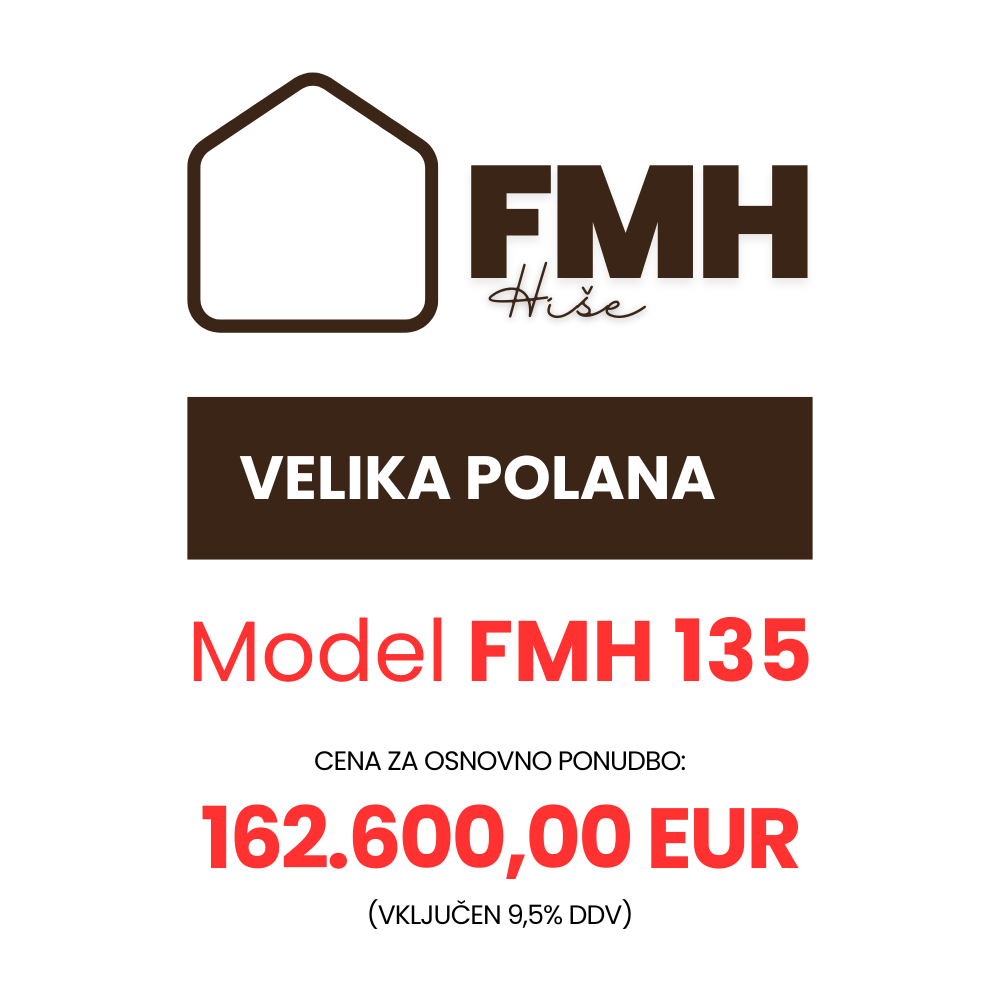 Hiša FMH 135 Velika Polana je zasnovana in konstruirana glede na potrebe, izražene v idejnem načrtu za Javni razpis za prodajo nepremičnin z javnim zbiranjem ponudb za mlade in mlade družine v občini Velika Polana. To pomeni, da so vse predstavljene rešitve optimalno prilagojene domačemu okolju in mladim, ki jim je ta razpis namenjen.